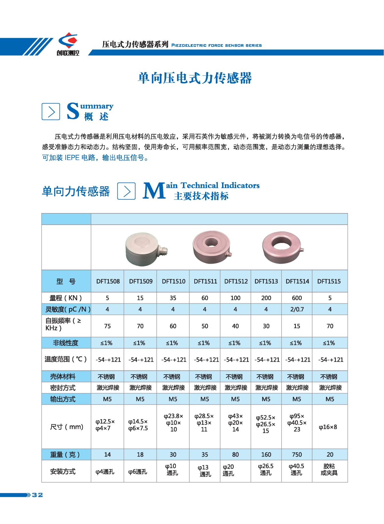 單向壓電式力傳感器